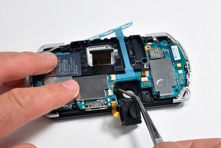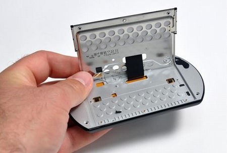 與iPod、Zune HD等機(jī)型不同,PSP go的內(nèi)部沒有使用任何框架,所有結(jié)構(gòu)都是由塑料外殼進(jìn)行支撐。