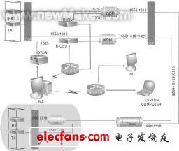 對(duì)光纖性能和故障監(jiān)測(cè)的分析模塊采用計(jì)算機(jī)控制的OTDR卡和配套光器件(包括光開(kāi)關(guān)、波分復(fù)用器、濾光器等)實(shí)現(xiàn),監(jiān)測(cè)計(jì)算機(jī)通過(guò)程控光開(kāi)關(guān)(OSU)選擇被測(cè)光纖,路由選通后OTDR發(fā)射1625nm檢測(cè)光,再經(jīng)過(guò)波分復(fù)用器件(WDM)復(fù)用到傳輸網(wǎng)絡(luò)中,檢測(cè)光的反射波由計(jì)算機(jī)控制的OTDR進(jìn)行分析處理,實(shí)現(xiàn)光纜運(yùn)行性能的監(jiān)測(cè)和故障的精確定位。
