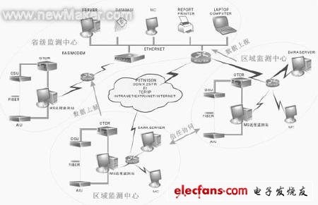 對于小型專網,如果采用心型結構規(guī)劃,可以使用集中監(jiān)控的方式,在總局設立監(jiān)控中心和監(jiān)測站,把通往分局的光纖接入到系統(tǒng),這樣就可以實現(xiàn)通信光纜的在線監(jiān)控。