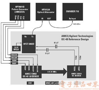 抖動(dòng)容限測(cè)量。用1300nm 2x10 OC-48 SFF收發(fā)模塊和參考設(shè)計(jì)板可以測(cè)量抖動(dòng)容限。評(píng)估參考設(shè)計(jì)板集成了帶有STS-48接口的SONET/SDH復(fù)用器/解復(fù)用器芯片和一個(gè)能支持STS-3/-12/-48或者千兆以太網(wǎng)的多速率時(shí)鐘數(shù)據(jù)恢復(fù)芯片。