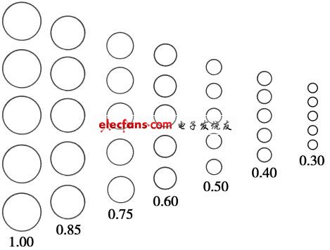 圖中“○”為高對(duì)比度圓孔(也有的為方孔),圖中標(biāo)注的尺寸是指孔的直徑,這是以毫米的形式表示空間分辨率。如果掃描后重建影像,能清晰地分辨出0.50那一排孔,就說成空間分辨率為0.50 mm,對(duì)應(yīng)的線對(duì)數(shù)為10線對(duì)/厘米。