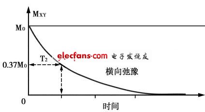 在脈沖結(jié)束的一瞬間,M在XY平面上分量Mxy達(dá)最大值,在Z軸上分量Mz為零。當(dāng)恢復(fù)到平衡時,縱向分量Mz重新出現(xiàn),而橫向分量Mxy消失。由于在弛豫過程中磁化矢量M強(qiáng)度并不恒定,縱、橫向部分必須分開討論。弛豫過程用2個時間值描述,即縱向弛豫時間(T1)和橫向弛豫時間(T2)。