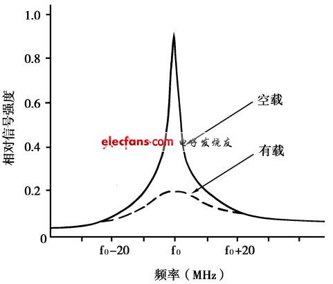匹配良好的線圈諧振在要求的工作頻率上,諧振點(diǎn)信號(hào)強(qiáng)度最大,如圖5-40所示。