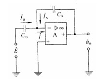 ③運算放大器電路,如圖1.8所示,為被測電容,放大器的輸出電壓為: