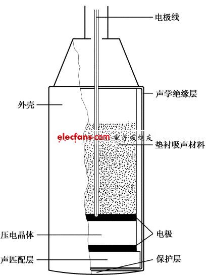 柱形單振元探頭主要用于A超和M超,又稱筆桿式探頭。目前在經顱多普勒(TCD)及胎心監(jiān)護儀器中亦用此探頭。由于它是各型超聲成像儀用探頭的結構基礎,特此作一介紹。