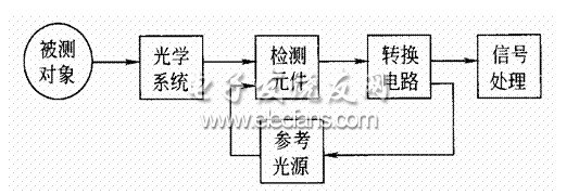 輻射式溫度計主要由光學系統(tǒng)、檢測元件、轉換電路和信號處理等部分組成,如圖2.3所示。根據(jù)檢測輻射能中的波長的不一樣,輻射溫度計分為全輻射高溫計、光電溫度計和比色溫度計等。