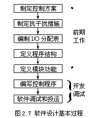 如圖2.7,PLC系統(tǒng)的軟件設(shè)計包括前期工作和開發(fā)調(diào)試兩個過程。前期工作包括制定控制方案、制定抗干擾措施、編制I/O分配表、確定程序結(jié)構(gòu)、定義軟件模塊的功能,然后編寫應(yīng)用軟件的指令程序,最后進行軟件的調(diào)試和投運。在軟件設(shè)計過程中,前期工作內(nèi)容往往會被設(shè)計人員所忽視,事實上這些工作對提高軟件的開發(fā)效率、保證應(yīng)用軟件的可維護性、縮短調(diào)試周期都是非常必要的,特別是對較大規(guī)模的PLC系統(tǒng)更是如此。