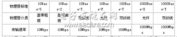 以太網(wǎng)能支持多種傳輸介質(zhì),在物理層為每種傳輸介質(zhì)制定了相應(yīng)的技術(shù)規(guī)范,這些標(biāo)準(zhǔn)主要有:10Base-5、10Base-2、10Base-T、10Base-F、100Base-T、1000Base-X……,它們的特點(diǎn)參見下表。