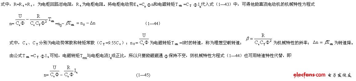 他勵(lì)直流電動(dòng)機(jī)的轉(zhuǎn)速特性可表示為