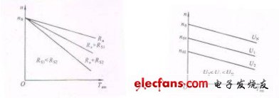 由于電動(dòng)機(jī)的工作電壓以額定電壓為上限,因此改變電壓時(shí),只能在低于額定電壓的范圍內(nèi)變化,與固有特性比較,降低電壓時(shí)人為特性的斜率