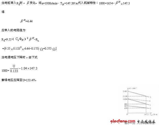 (3)電源電壓降至110V時(shí)的人為特性;
