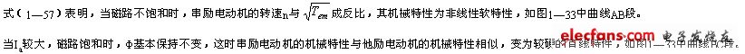 串勵(lì)電動(dòng)機(jī)的固有特性是在U=UN,RS=0時(shí)的特性(圖1—33所示),具有以下特點(diǎn):