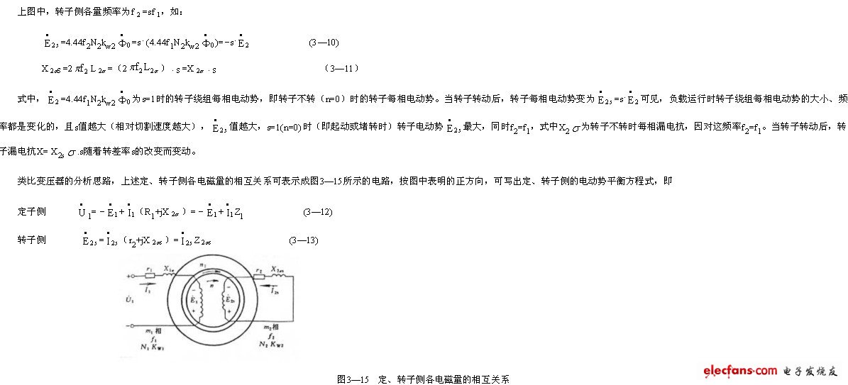 圖3—15所示的定、轉(zhuǎn)子電路,雖可表示異步電動(dòng)機(jī)定、轉(zhuǎn)子側(cè)及其相互聯(lián)系,但定、轉(zhuǎn)子電路的頻率不同,相數(shù)、有效匝數(shù)也不同。給異步電動(dòng)機(jī)的分析帶來困難。由于電動(dòng)機(jī)定、轉(zhuǎn)子磁耦合的聯(lián)系主要體現(xiàn)在轉(zhuǎn)子磁動(dòng)勢(shì)