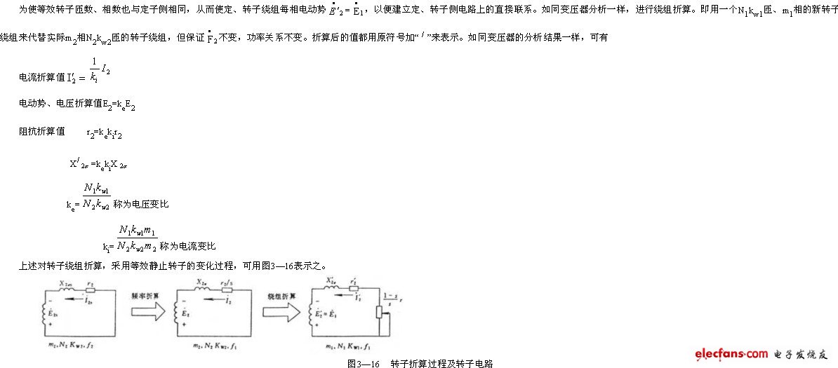 不變(相應(yīng)地功率傳遞關(guān)系也不變),那么就可以用一個(gè)等效轉(zhuǎn)子代替實(shí)際轉(zhuǎn)子,稱之為“折算”。該等效轉(zhuǎn)子的頻率應(yīng)為f1,相數(shù)為m1,有效匝數(shù)為N1kw1,與定子側(cè)完全相同。