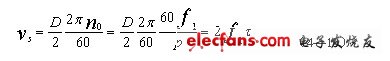 式中,D為旋轉(zhuǎn)電動(dòng)機(jī)定子內(nèi)圓周的直徑;t為極距,t= pD/2p;p為極對數(shù);f為電源頻率。