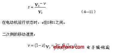 行波磁場切割二次側(cè)導(dǎo)條,將在導(dǎo)條中產(chǎn)生感應(yīng)電動(dòng)勢和電流,所有導(dǎo)條的電流(圖中只畫出其中一根導(dǎo)條)和氣隙磁場相互作用,產(chǎn)生切向電磁力。如果一次側(cè)是固定不動(dòng)的,那么二次側(cè)便在這個(gè)電磁力的作用下,順著行波磁場的移動(dòng)方向作直線運(yùn)動(dòng)。若二次側(cè)移動(dòng)的速度用n表示,轉(zhuǎn)差率用s表示,則有