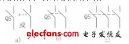 HZ10系列組合開(kāi)關(guān)在電路圖中的符號(hào)如圖5—5c所示。
