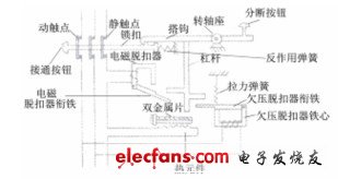 漏電保護(hù)斷路器通常稱作漏電開(kāi)關(guān),是一種安全保護(hù)電器,在線路或設(shè)備出現(xiàn)對(duì)地漏電或人身觸電時(shí),迅速自動(dòng)斷開(kāi)電路,能有效的保證人身和線路的安全。電磁式電流動(dòng)作型漏電斷路器結(jié)構(gòu)如圖5—8所示。