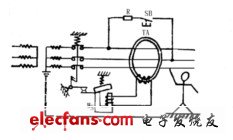 為了經(jīng)常檢測(cè)漏電開(kāi)關(guān)的可靠性,開(kāi)關(guān)上設(shè)有試驗(yàn)按鈕,與一個(gè)限流電阻R串聯(lián)后跨接于兩相線路上。當(dāng)按下試驗(yàn)按鈕后,漏電斷路器立即分閘,證明該開(kāi)關(guān)的保護(hù)功能良好。