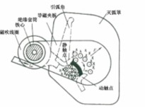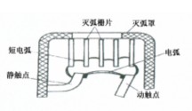 (1)雙斷口電動力滅弧 雙斷口結構的電動力滅弧裝置如圖5—32a所示。這種滅弧方法是將整個電弧分割成兩段,同時利用觸點回路本身的電動力F把電弧向兩側拉長,使電弧熱量在拉長的過程中散發(fā)、冷卻而熄滅。