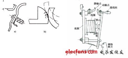 a)銜鐵直線運動式;b)銜鐵繞軸轉(zhuǎn)動排合式