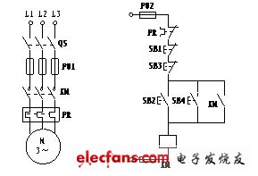 在大型機(jī)床或生產(chǎn)設(shè)備上,為方便操作人員在不同位置均能進(jìn)行操作,常要求多地控制。一般多地控制只需增加控制按鈕即可。多地控制的原則為:起動(dòng)按鈕并聯(lián),停止按鈕串聯(lián)。幾個(gè)起動(dòng)按鈕或停止按鈕分別裝在不同的位置。