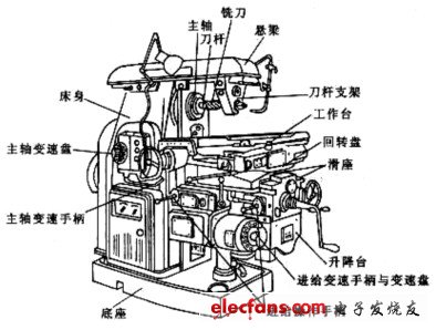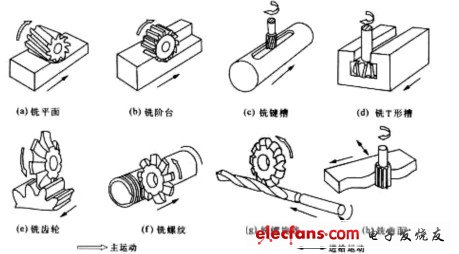 圖7-12 銑床主運(yùn)動(dòng)和進(jìn)給運(yùn)動(dòng)示意圖