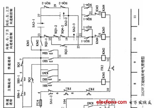 三、X62W型萬(wàn)能銑床電氣控制電路分析