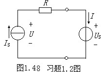 1.2如圖1.48所示電路,已知電壓US=20V,電流IS=10A,電阻R=5Ω,計(jì)算通過(guò)電壓源的電流I、電流源兩端的電壓U,并判斷電路中哪一個(gè)元件作為電源使用。