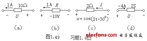 1.4求圖1.49所示各電路中的R、U及i。
