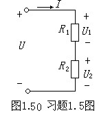 1.5如圖1.50所示電路,已知電壓U=20V,電阻R1=10KΩ,在如下三種情況下,分別求電流I、電壓U1和U2。