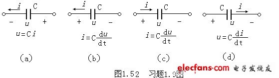 1.9如圖1.52所示電路中各電容元件的伏安關(guān)系式,哪些是正確的,哪些是錯(cuò)誤的,為什么?