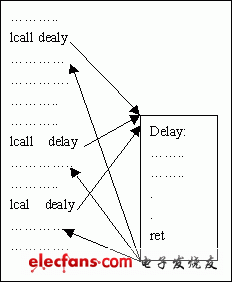 (2)調(diào)用及回過程:主程序調(diào)用了子程序,子程序執(zhí)行完之后必須再回到主程序繼續(xù)執(zhí)行,不能“一去不回頭”,那么回到什么地方呢?是回到調(diào)用子程序的下面一條指令繼續(xù)執(zhí)行(當(dāng)然啦,要是還回到這條指令,不又要再調(diào)用子程序了嗎?那可就沒完沒了了……)。參考圖1
