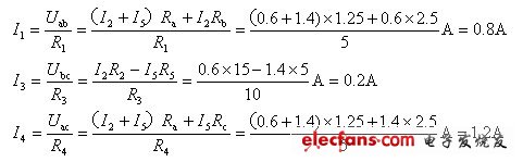 為求得電阻R1、R3、R4的電流I1、I3、I4,可從圖2-1-10(b)分別求得電壓Uab、Ubc、Uac,再回到圖2.10(a)求解,則:
