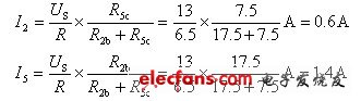 (2)電路中電阻R2、R5的電流I2、I5為: