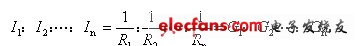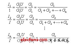 即:電阻的并聯(lián)網(wǎng)絡(luò)的每個電阻的電流與端電流的比等于該電導(dǎo)與等效電導(dǎo)的比,這個比值稱為“分流比”。在端電流一定時,適當(dāng)選擇并聯(lián)電阻,可使每個電阻得到所需要的電流,因此并聯(lián)電阻有“分流”作用。
