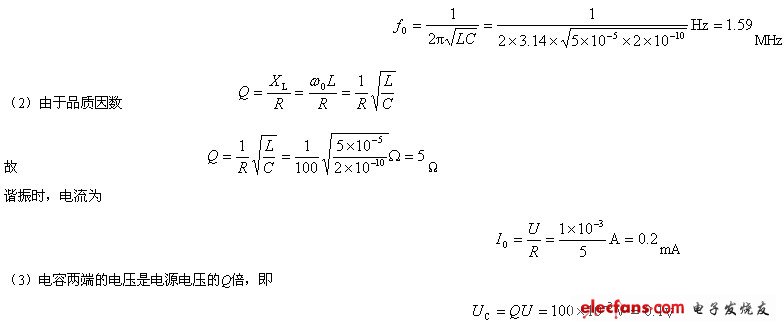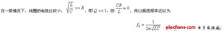 這個公式與串聯(lián)諧振頻率公式相同。在實際電路中,如果電阻的損耗較小,應(yīng)用此公式計算出的結(jié)果,誤差是很小的。