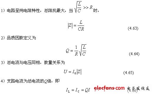 圖4.42 R、L與C并聯(lián)諧振電路