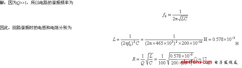 解:要使f=820kHz信號獲得最佳效果,必須使電路的固有頻率為820kHz,即電路諧振頻率為