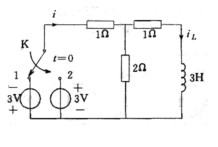 例7.4 如圖(7.14)(a)所示電路中,換路前電路呈穩(wěn)態(tài)。當(dāng)開關(guān)S從位置1扳到位置2時,求iL(t)和i(t)。
