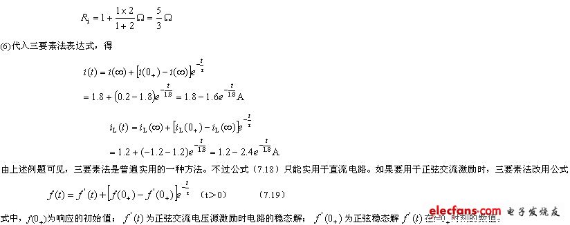(5)根據(jù)所求得的三要素,代入式(7.18)即可得響應(yīng)電流或電壓的瞬態(tài)過程表達(dá)式。