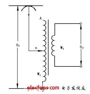 在調(diào)壓過程中,隨著n點(diǎn)的逐漸下移,變壓器一次側(cè)有效匝數(shù)逐漸減小,使變壓器變比逐漸減小,變壓器二次側(cè)電壓即逐漸升高。也就是隨著n點(diǎn)在一次側(cè)繞組上的移動(dòng),變壓器一次側(cè)繞組的有效匝數(shù)發(fā)生變化,二次側(cè)繞組上就可以獲得不同的輸出電壓。