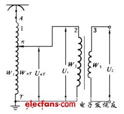 由式(2-14)可知,在調(diào)壓過程中不斷改變高壓繞組與調(diào)壓繞組相連的匝數(shù)WnT,牽引變壓器輸出電壓U2即隨之改變。在這種調(diào)壓方法中牽引變壓器為三繞組變壓器,也可以把變壓器視為一臺(tái)普通變壓器與一臺(tái)高壓自耦變壓器的組合體,用高壓自耦變壓器調(diào)壓,普通變壓器輸出。