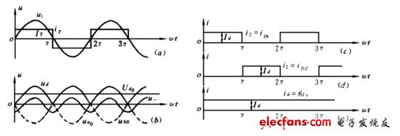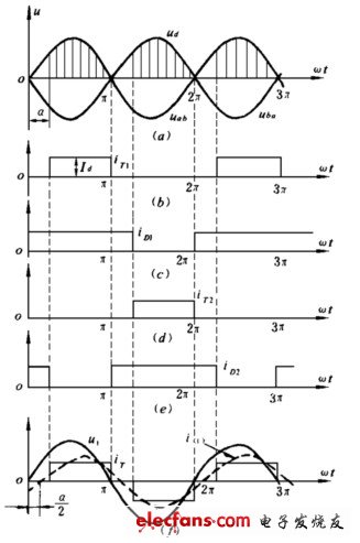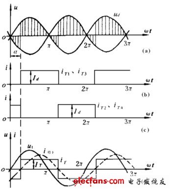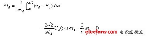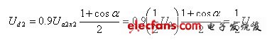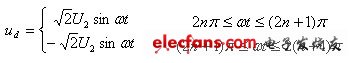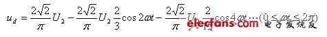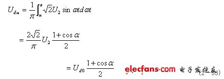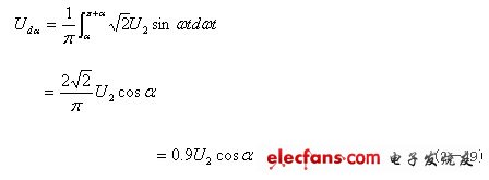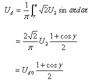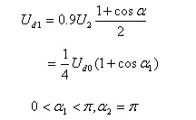設(shè)二次側(cè)交流電壓 ,則在晶閘管控制角為nπ+α時(shí),整流電壓平均值Udα為: