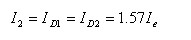 因?yàn)榱鬟^(guò)整流元件的電流與變壓器次邊繞組電流相同,故其電流有效值為I2=ID1=ID2=0.707Id。由于中抽式電路的整流元件在一個(gè)周波內(nèi)只導(dǎo)通半個(gè)周波,故流過(guò)整流元件的平均電流Ipj=1/2Id,根據(jù)整流元件額定電流Ie的定義(一般標(biāo)明為額定正向平均電流,它的含義是指該元件在符合規(guī)定的條件下,電流為正弦半波時(shí)所允許通過(guò)的電流平均值)。
