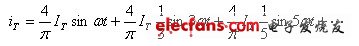 對(duì)于單相不控整流電路,由圖2-14(a)可知,變壓器一次側(cè)電流iT波形為方波,按富氏級(jí)數(shù)分解為與電壓同頻率的基波分量和一系列的奇次諧波分量,即: