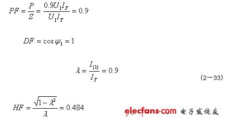 式(2-29)表明諧波系數(shù)HF等于諧波電流有效值和基波電流有效值之比。