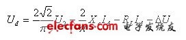 比較式(2-16)、式(2-17)可知,整流電壓ud的直流分量即為不控整流電路輸出的平均電壓Ud,稱為理想空載直流電壓Ud0: