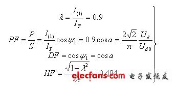 由此機(jī)車整流電路的功率因數(shù)和諧波干擾量可用PF、DF、HF三個(gè)參數(shù)來(lái)表達(dá)。