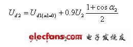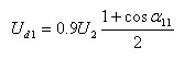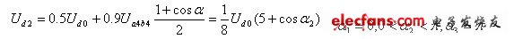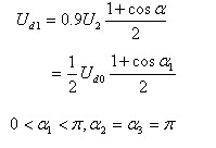 當(dāng)α1=π時(shí),Udl=0;αl=0時(shí),Ud1=0.5Ud0=0.9Ua2x2。